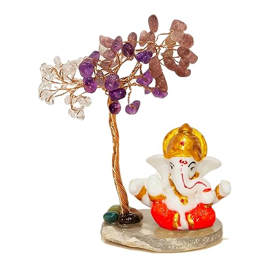 CTT006 INAYA POP-UP SHOP Amethyst Crystal Tree with Lord Ganesha Idol on Stone Base – Handmade Gemstone Bonsai for Prosperity, Protection & Positive Energy