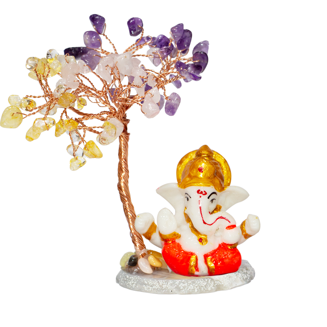 CTT007 INAYA POP-UP SHOP Natural Crystal Gemstone Tree with Lord Ganesha Idol | Healing Feng Shui Decorative Showpiece for Home, Office & Gifts (Amethyst, Citrine, Rose Quartz Variants)