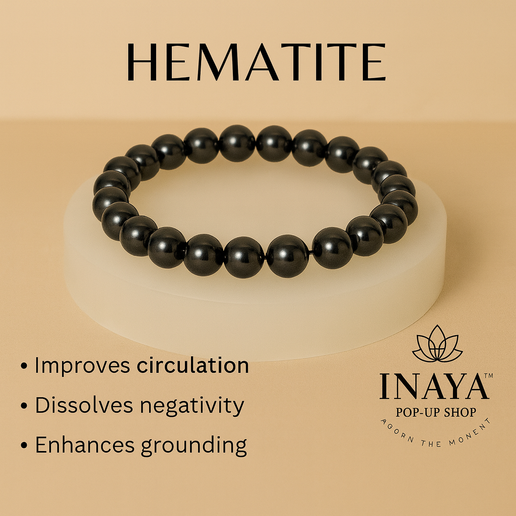 ONE PIECE OF GB006 ROUND SHAPE NATURAL HEMATITE STONE BRACELET
