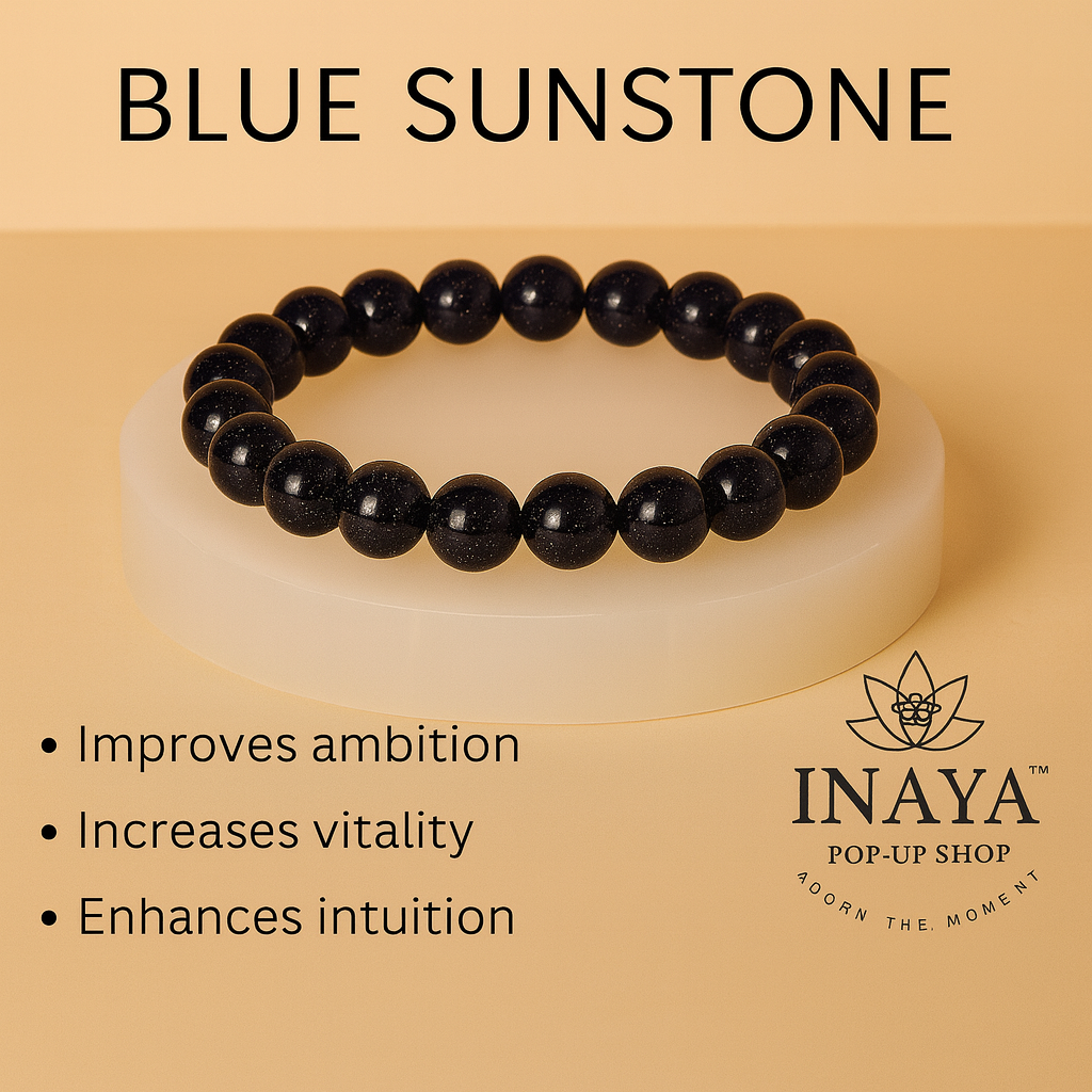 ONE PIECE OF GB018 ROUND SHAPE NATURAL BLUE SUNSTONE BRACELET