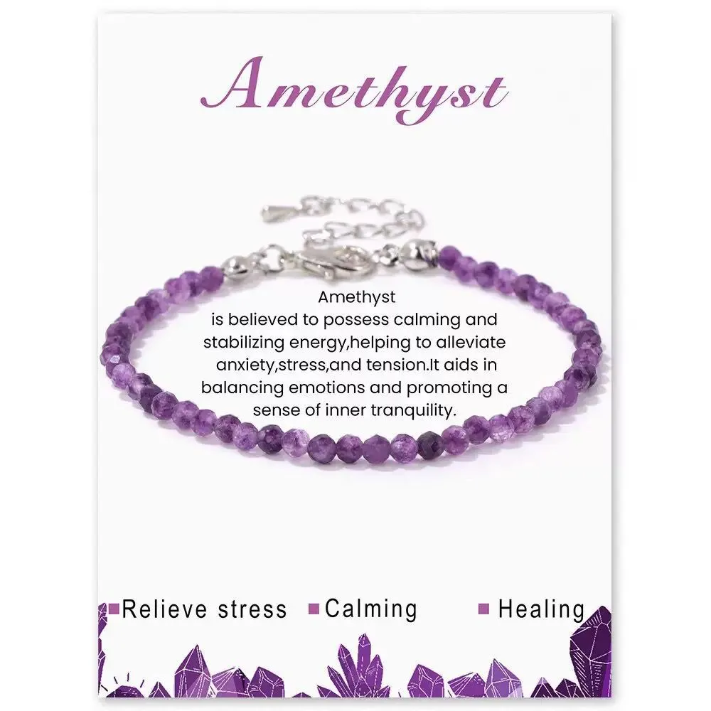 ONE PIECE OF SB002 2MM SILVER PLATED AMETHYST STONE BEAD BRACELET